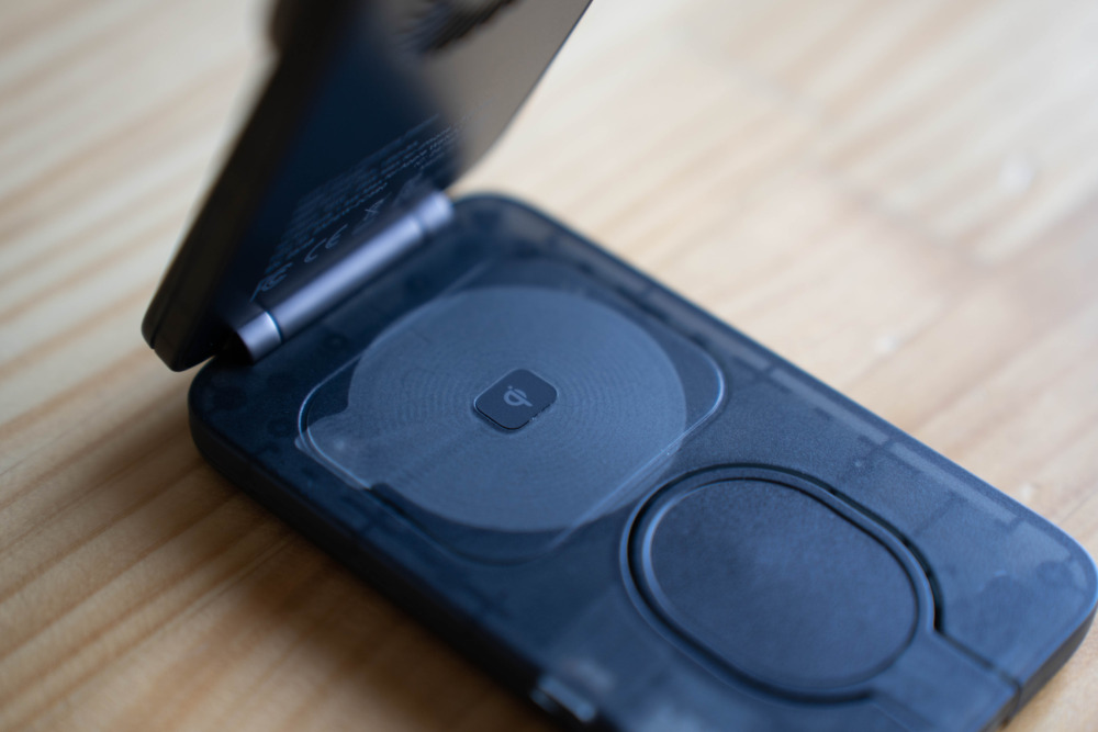 Qi2 25W対応スマホ・イヤホン・Apple Watchを同時に充電できるうえ、いざとなれば折りたたんで持ち運べる薄型設計。実際にしばらく使ってみたので、使用感などレビューしていきます。