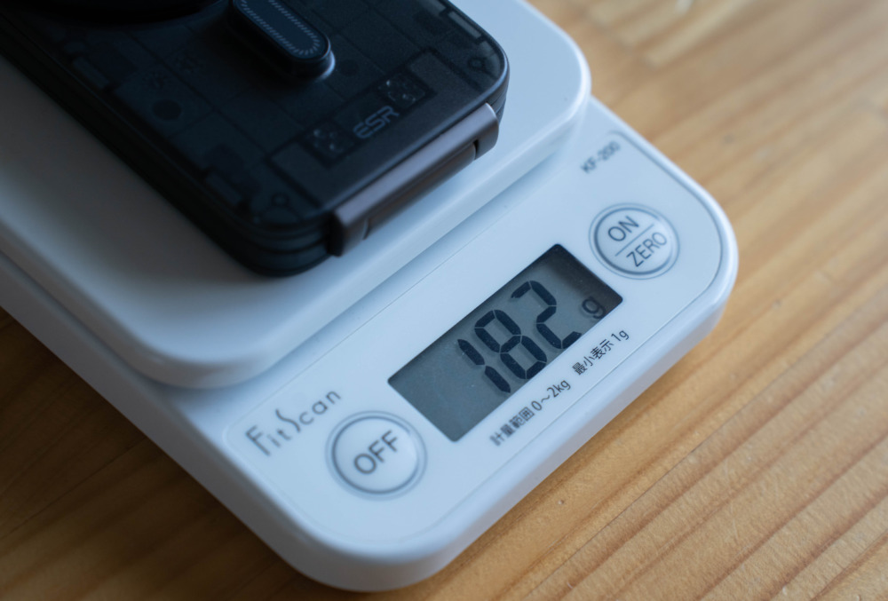 充電器の重さは182gとスマホと変わらない重さなので、持ち歩きにも負担になりません。