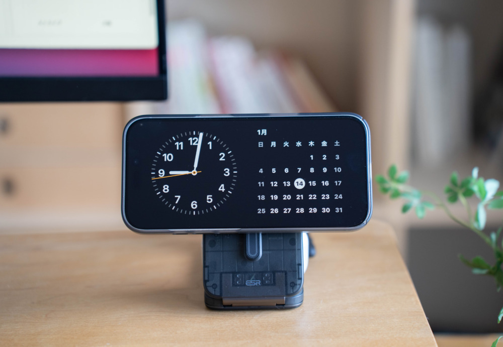 充電中のiPhoneを活用できる「スタンバイモード」にも対応するので、時計表示 (デジタル/アナログ) やお気に入りの写真、ウィジェットの表示も可能です。