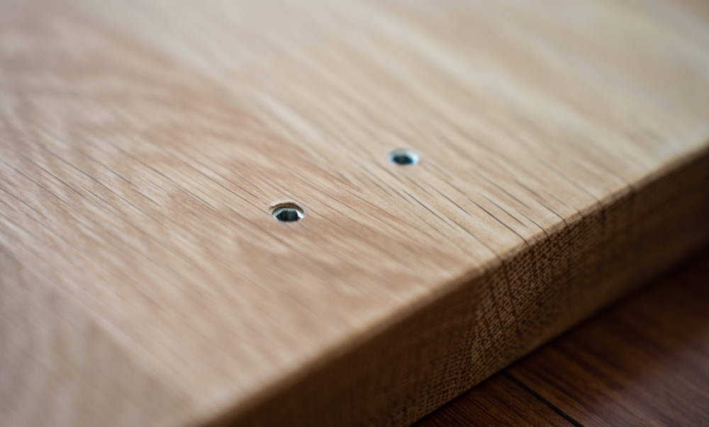 また、天板にはあらかじめ鬼目ナットが仕込まれた状態なので、穴あけ云々の工程も一切なし。位置を合わせてビス止めするだけです。
