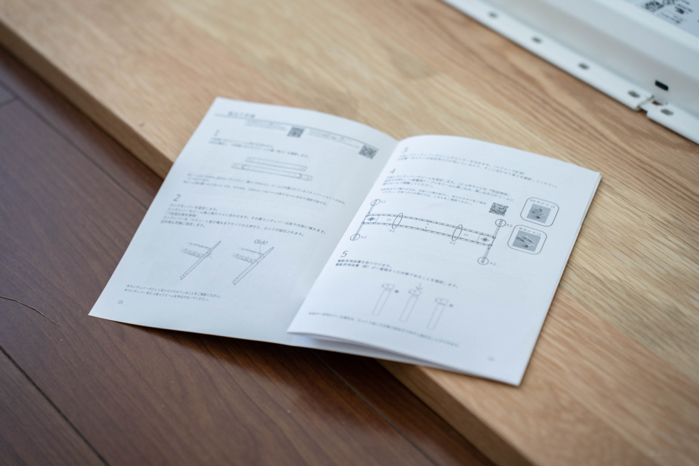 組み立てにかかった時間は15分ほど。パーツの取り出しや梱包材の処分込みにしても、30分かからない程度の時間で終えられます。天板と脚を別で用意する場合はとてもそんな時間ではできないですからね。
