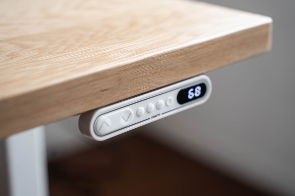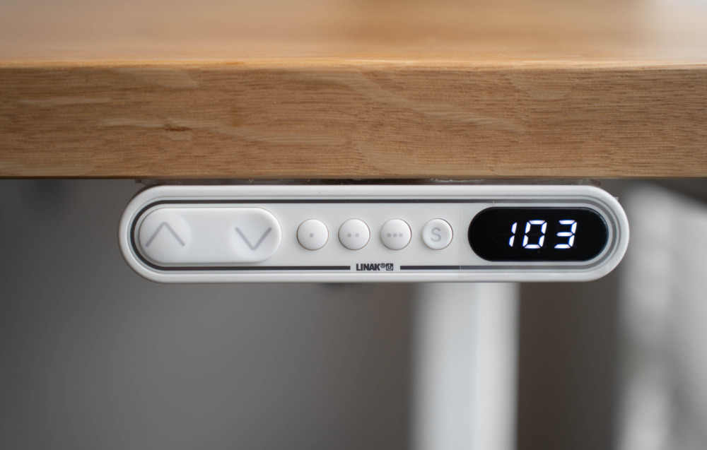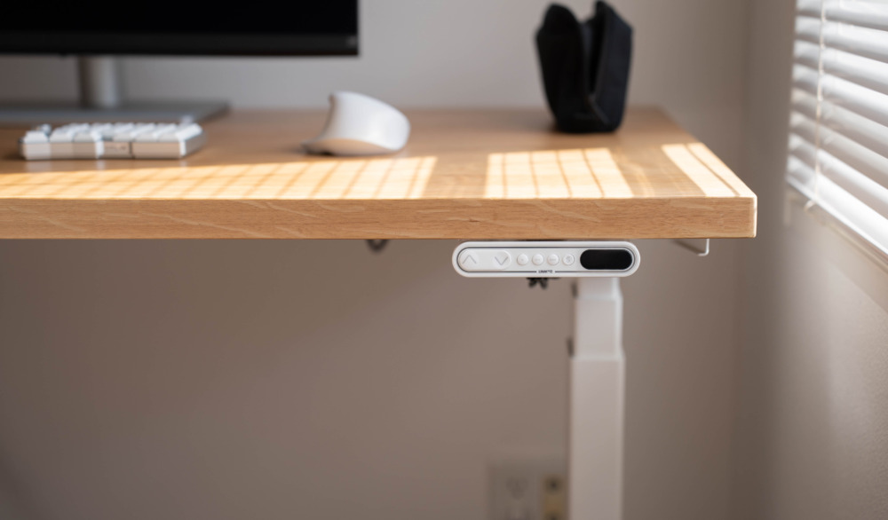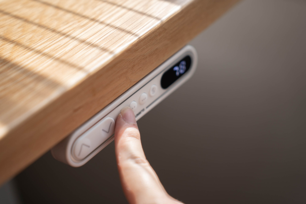 ただ、最近のFLEXISPOTのようなタッチパネル操作ではなく、物理ボタン式を採用しているのはありがたいです。体がコントローラーに当たっても誤って昇降することはないですし、慣れればノールックで操作できます。