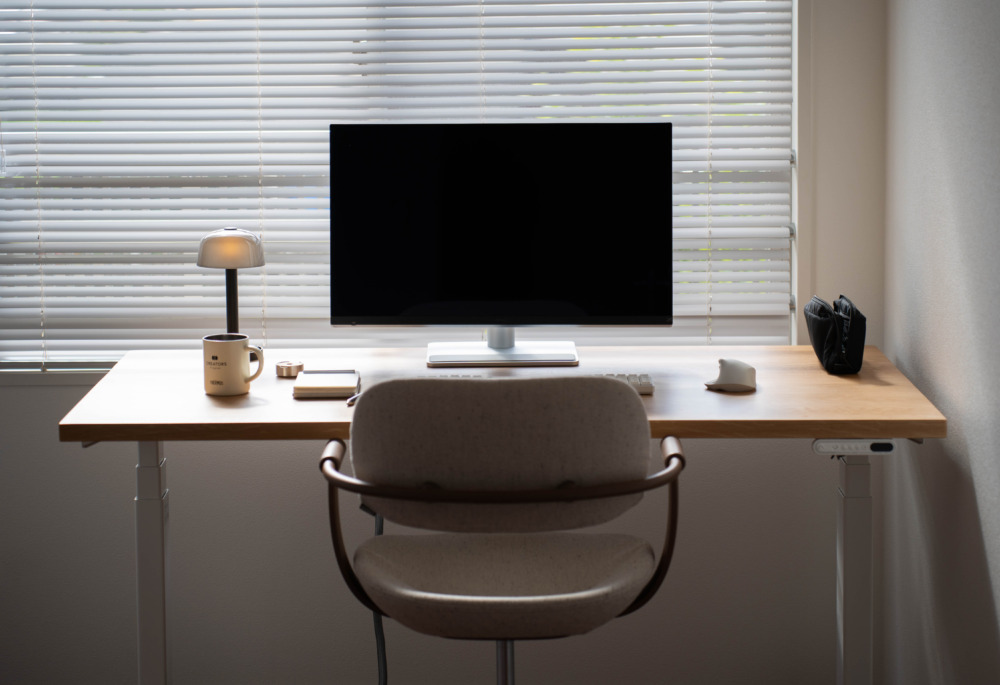 ホームオフィス・リモートワーク用にちょうどよいデスクを探す中で、昇降式というと、居住スペースに置くにはハードルが高いと感じている人も多いと思います。その点、KANADEMONOは自宅に配置しても比較的圧迫感少なく溶け込んでくれるというのが良さです。