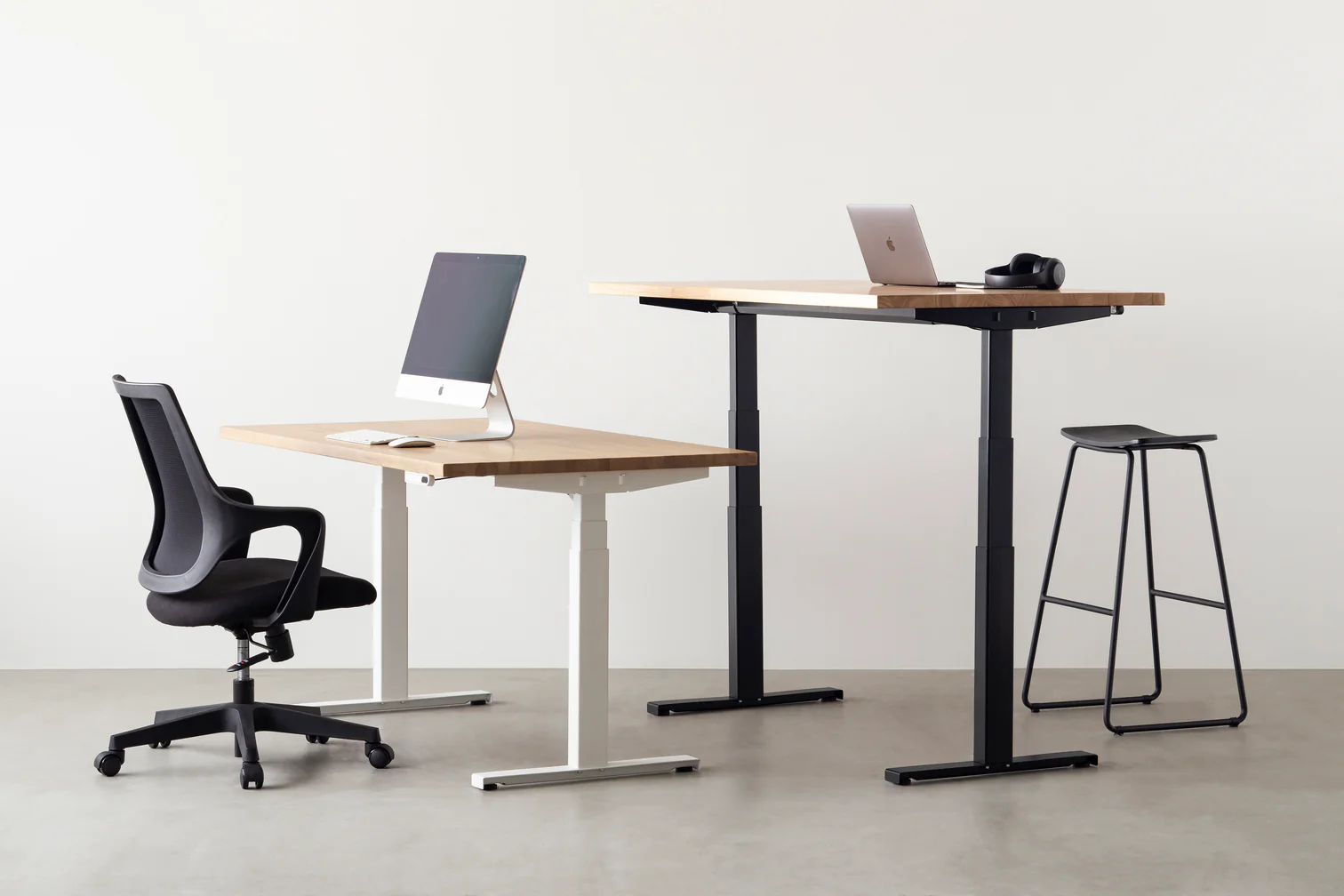 そして他社モデル同様に、昇降脚はホワイトとブラックの2種類から選べます。天板のバリエーションだけで50種類以上あるので、全部で100パターン以上の組み合わせから選べるということに(こんなに選択肢が豊富な昇降デスクは他じゃまずないですよね)。