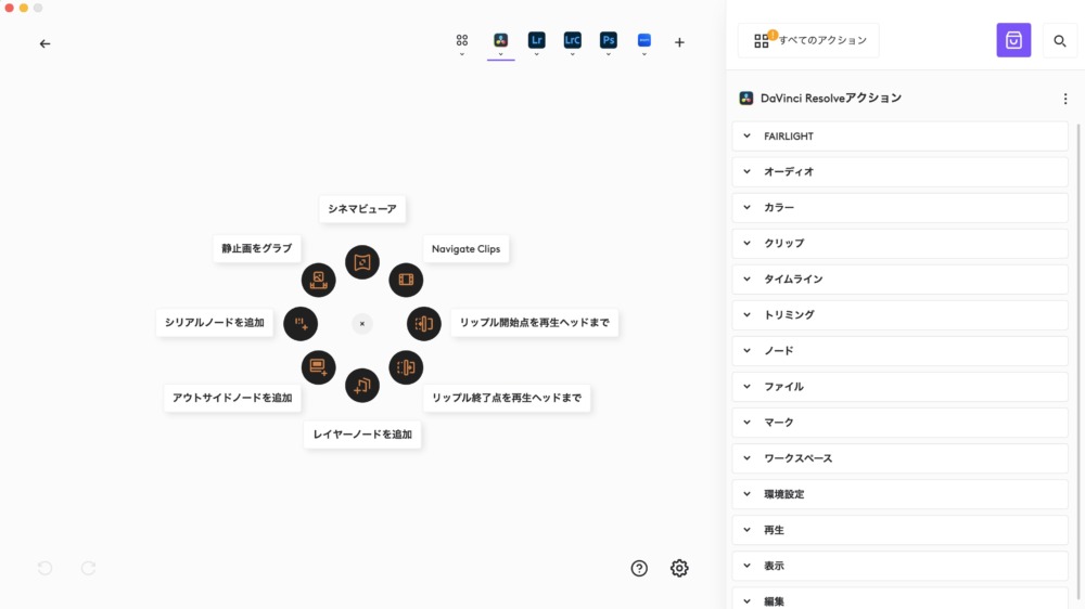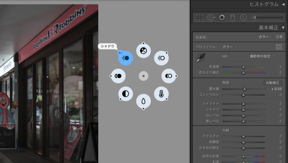 たとえば輝度、コントラスト、色合い、彩度の調整など多用するメニューもActions Ringに登録しておけば、素早くアクセス、調整できるので、ショートカットキーよりもサクッといじれます。