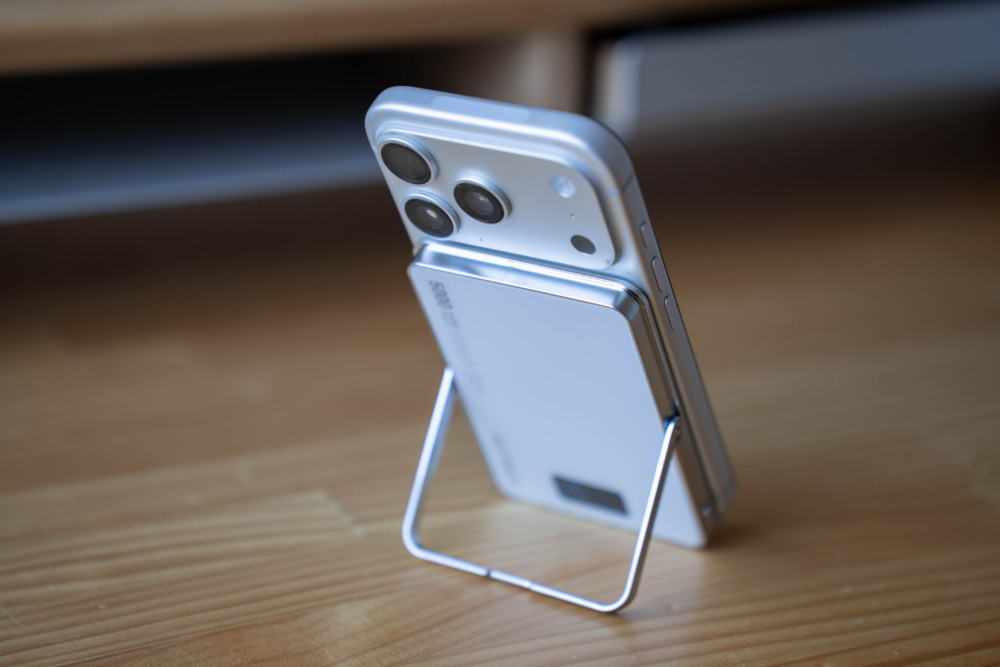 なんと、同じ面にあるワイヤレス充電パッドでiPhoneとApple Watchの両方を充電できるという優れもの。Qi2でこのタイプは今のところ唯一の選択肢ですし、格納性の高いスタンド付きで、ながら充電にも最適。