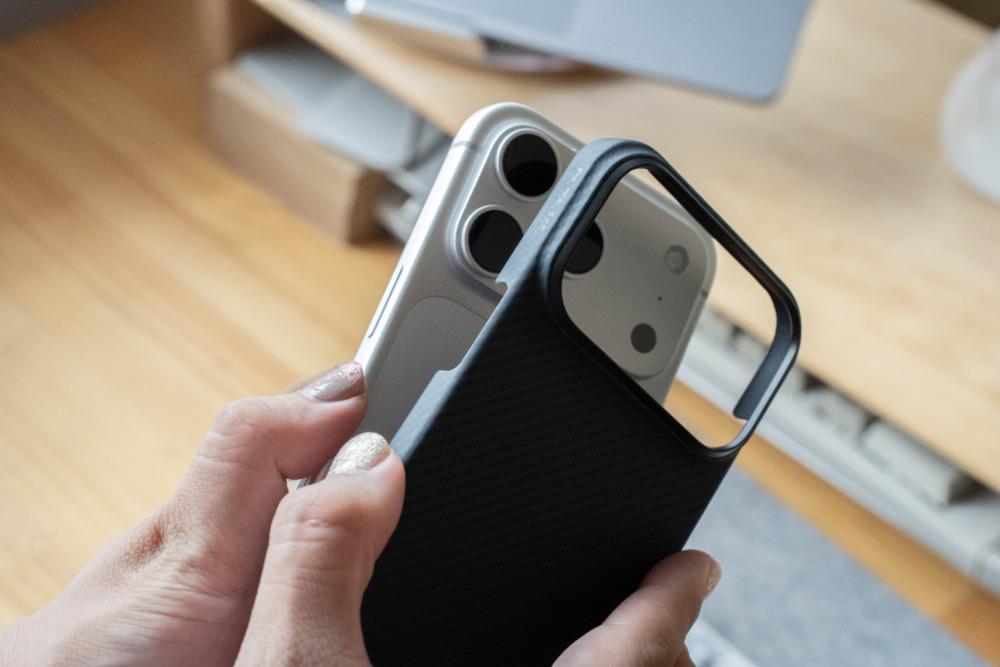 近年さまざまなメーカーが手がけるMagSafe対応のiPhoneケースですが、PITAKA Ultra-Slim Caseは「耐久性とミニマムさ」のバランスがこの上なく絶妙なケースという印象。薄くて軽い、そして頑丈。高級感あるカーボンライクなデザインが特徴的なケースです。