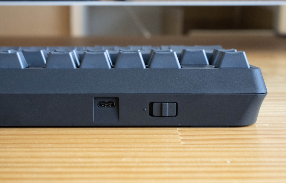 キーボード背面左側には、電源スライドスイッチとUSB Type-Cポート。