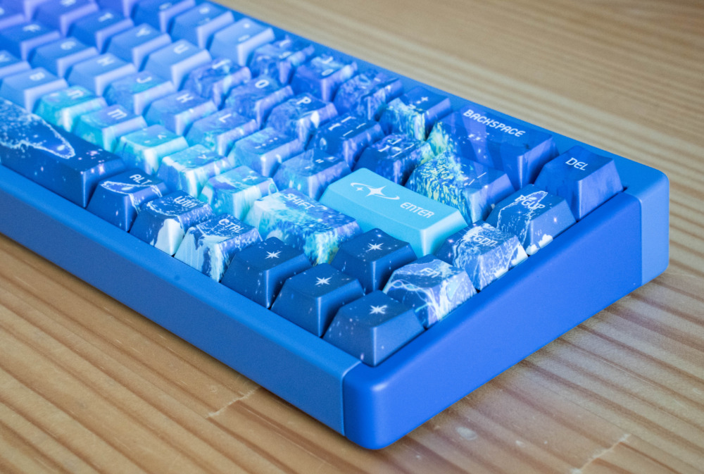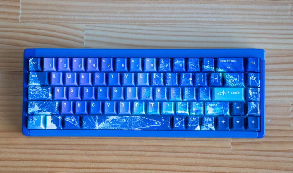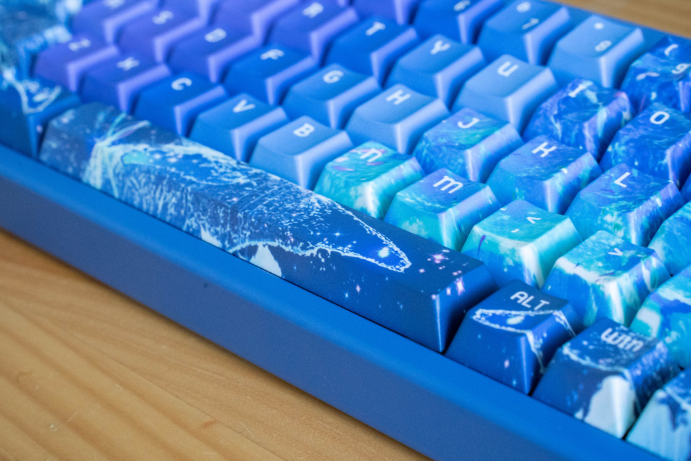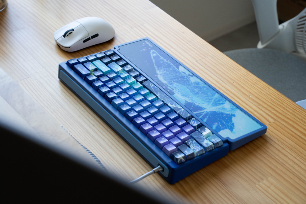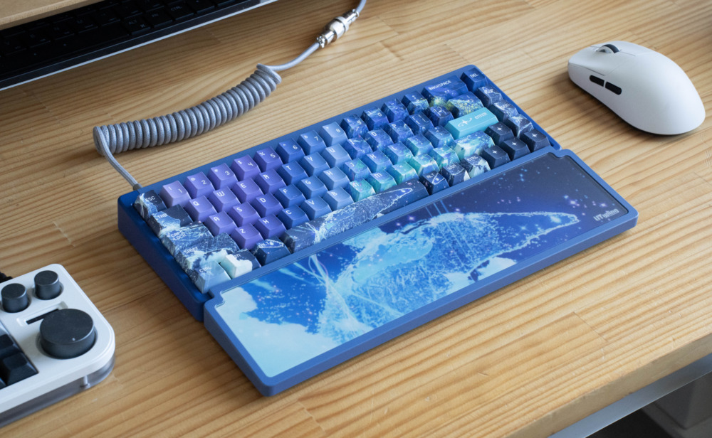 2カラー選択肢があり、こちらは「星鯨(ほしくじら、イラストレーター まころんさんとのコラボモデル)」。星空をモチーフにした幻想的なデザインで、デスクにガツンとアクセントを加えたい人にはこれ以上ないという外観。
