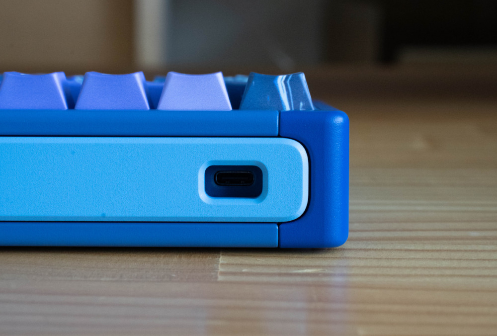 キーボードの上端の側面にはUSB Type-Cのコネクタがあります。本機は有線接続方式のみなので、特に切り替えスイッチなどはなく、コネクタがあるのみです。