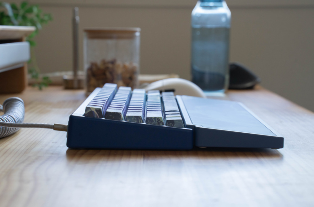 ちなみにフルアルミボディの本体は約1.5kgとかなりの重量級。持ち運びには適しませんが、デスク据え置きでの使用が想定されているので、安定したタイピングができます。