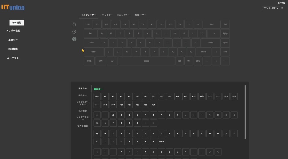 Utyping UT65 HEは、磁気式キースイッチを採用した65%レイアウト(68キー)英語配列のメカニカルキーボードです。