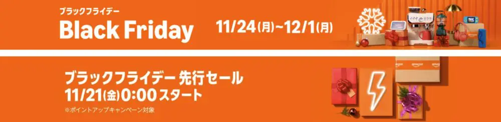 - ブラックフライデー(本セール):11/24(月)0:00 〜 12/1(月)23:59