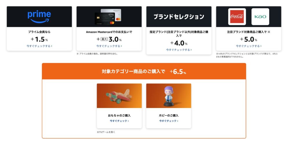 特設ページからポイントアップキャンペーンに参加すると、期間中にAmazonで買い物をするだけで最大16%のポイント還元を受けられます。