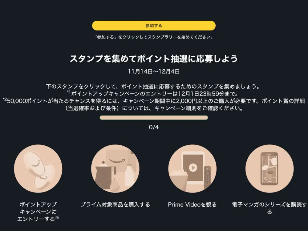 Amazonブラックフライデーにエントリーしたら、Amazonスタンプラリーに参加しましょう。