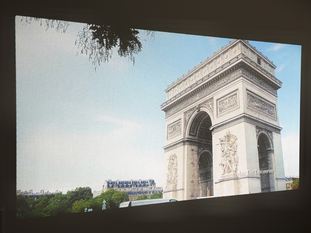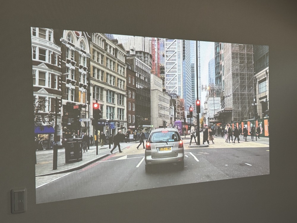 最近は2000ANSI ルーメンを超えるモデルも一般化してきているので、使用前は「650ANSI ルーメン、大丈夫?」なんて思ってました。が、いざ投影してみると日中の一番陽光が差し込む時間帯でもある程度遮光した状態なら全然問題ないですし、それこそ夕方以降に投影するともはや液晶テレビ並みでは?と言いたくなるくらい鮮明で明るいです。