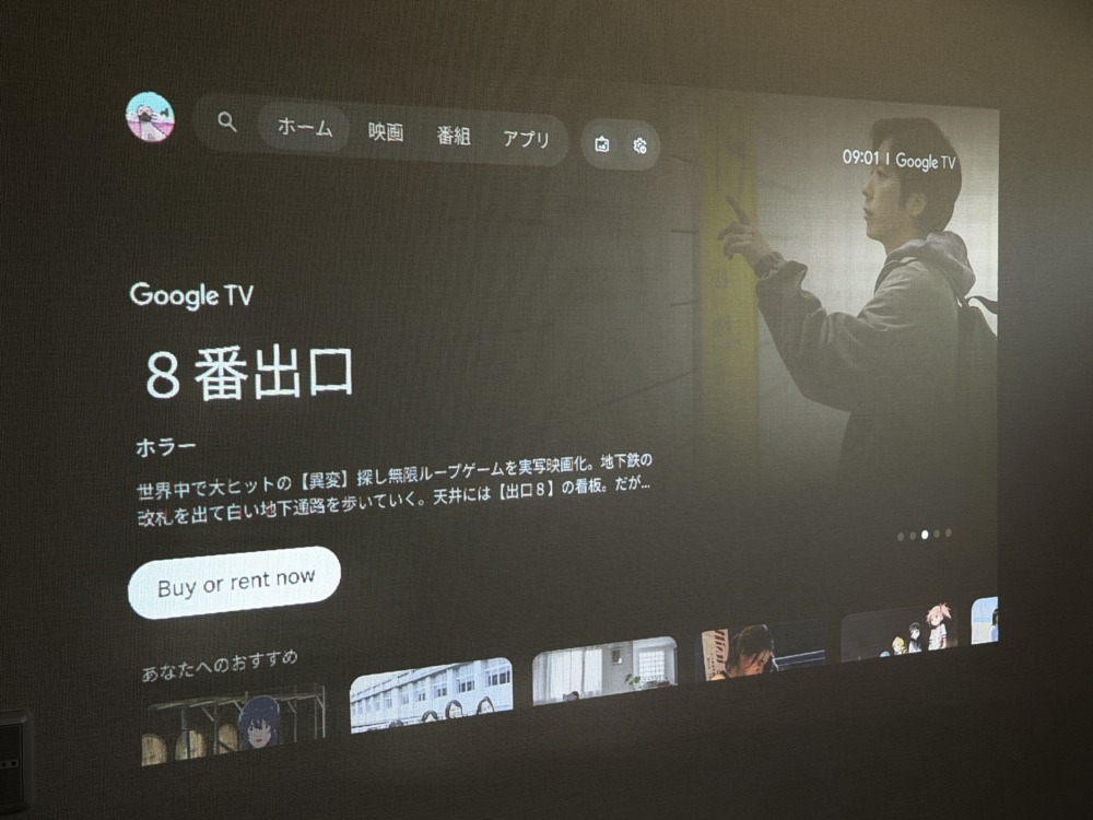 OSにGoogle TVを搭載するSoundcore Nebula P1。各種操作はもちろん、ストリーミングサービスで映像作品を楽しむ際に非常に使いやすいUIになっています。