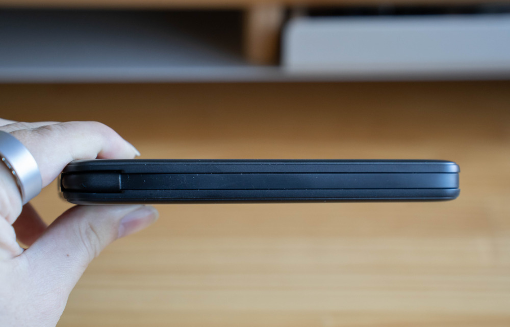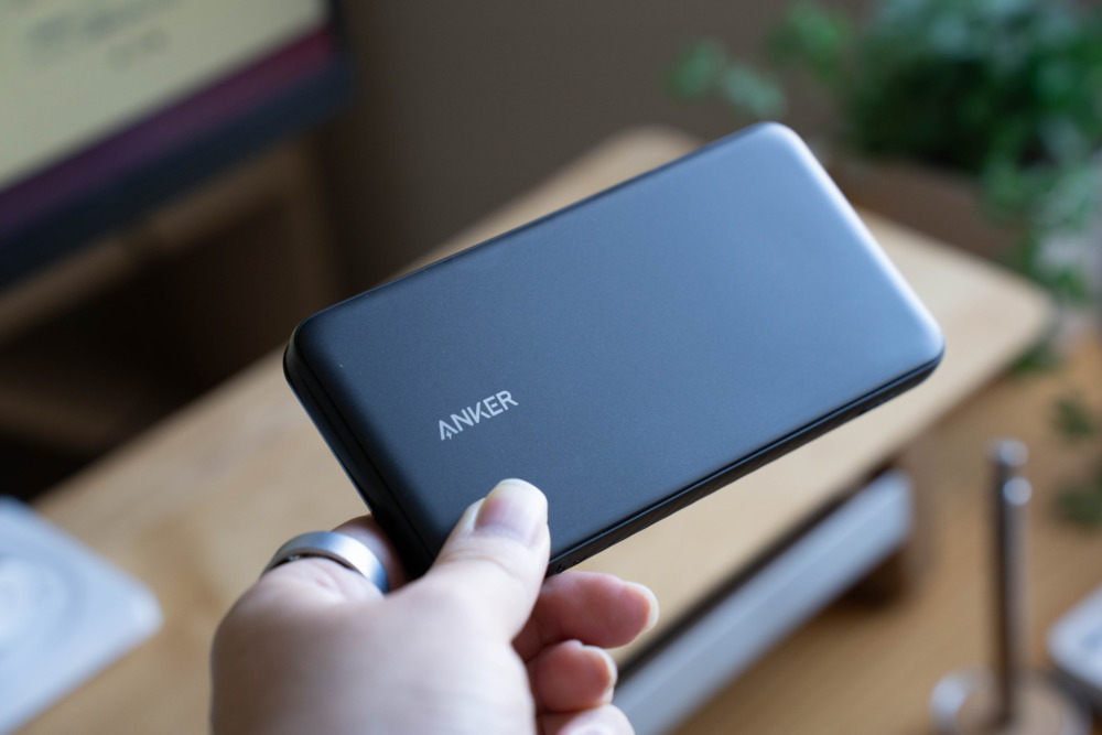 Ankerの10000mAhクラスでは初めて、ケーブルが本体にピタッと収納されるタイプで、ケーブル内蔵型にもかかわらずカード形状の極薄設計が魅力です。