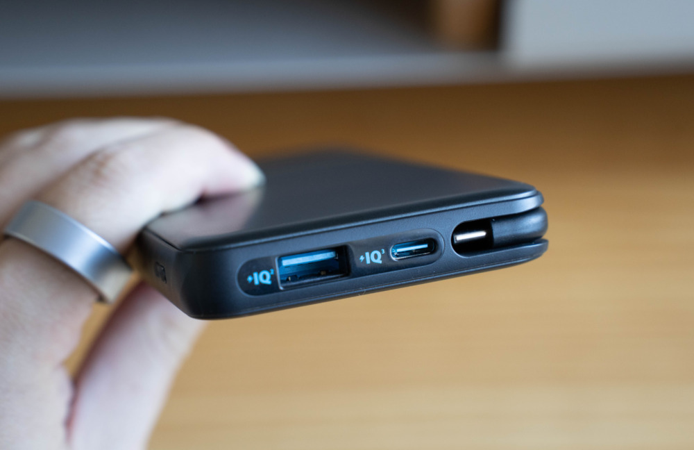 3千円台という手頃な価格設定ながら、ケーブル一体型、3ポート構成、ディスプレイ付き、パススルー充電対応、持ち歩きに適した極薄設計と全方位に完成度の高いAnker Zolo Power Bank (10000mAh, 22.5W, Built-In USB-Cケーブル) 。