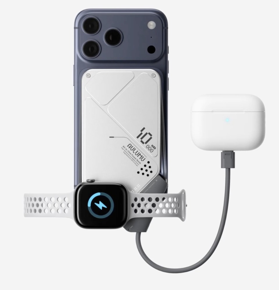 ツルンとした板状のデザインが多いモバイルバッテリーですが、AULUMUの「M10 10000mAh 3in1 両面マグネット式モバイルバッテリー」はメカメカしいデザインで機能性も併せ持つ逸品です。