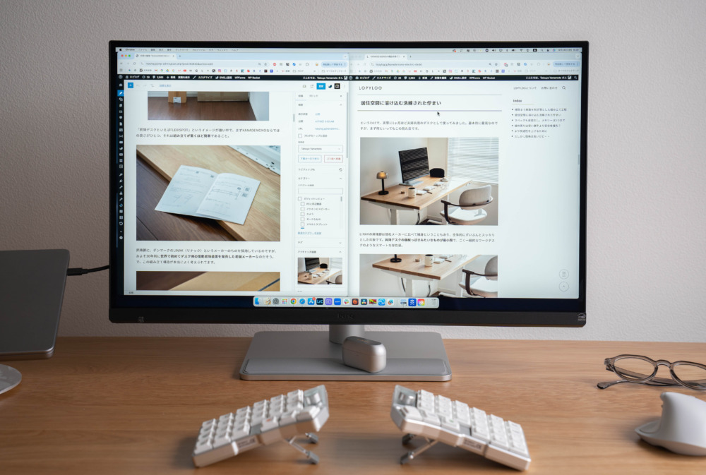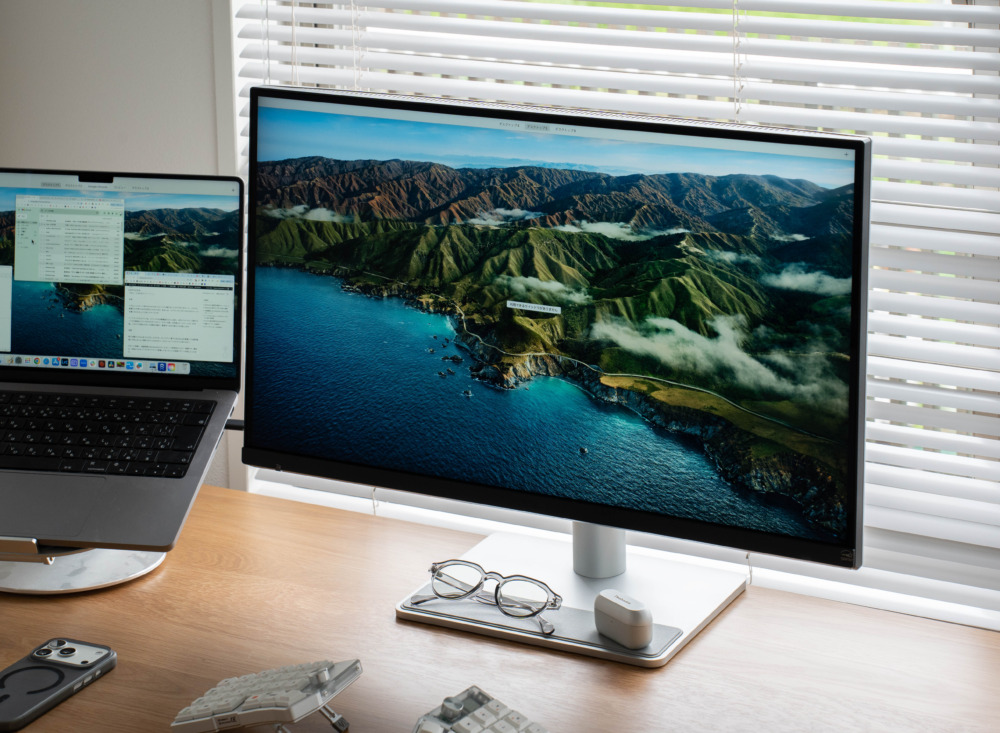 画素密度の高さによる「ほぼMac」な見え方、文句なしの色表現、機能的なソフトウェア。そして何より、MacBookと並べて様になる洗練された佇まいですよね。この点でBenQのMAシリーズは別格です。