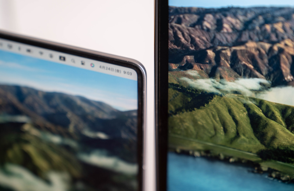 MacBook Proのベゼルと比べても大差なく、マルチモニター環境でもディスプレイ間のギャップや違和感も最小限です。