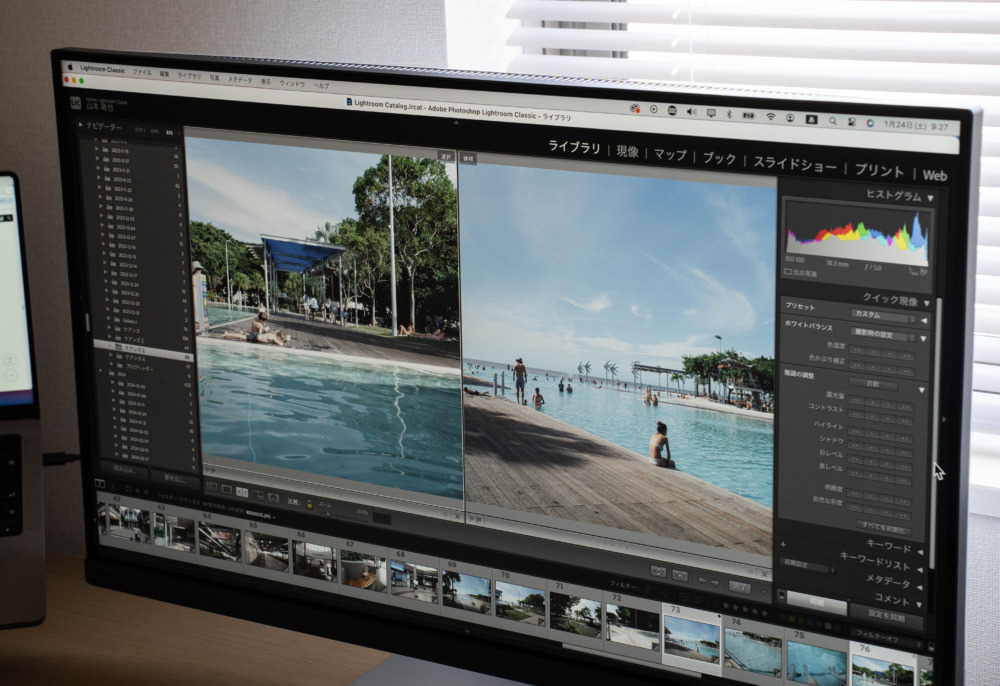 リモートワークに移行した直後に安いモニターを使っていた頃は「モニター上で編集した写真をスマホで見ると、別物レベルに色が違う…」みたいな現象がよく起きたものですが、PD3226Gではそういう類の心配はほんとに無縁です。