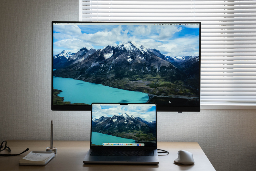 MacBook Proのベゼルと比べても大差なく、マルチモニター環境でもディスプレイ間のギャップや違和感も最小限です。