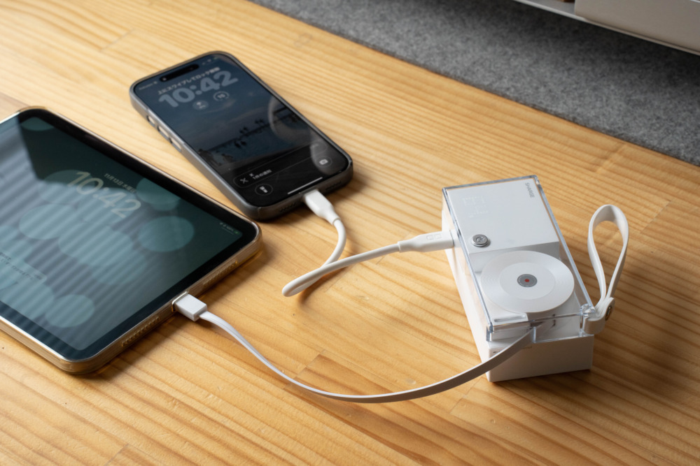 内蔵ケーブルやUSB-Cポートからの出力は、どちらも最大30W。決して突出する値ではありませんが、iPhoneはもちろん、タブレットまで充電できる出力になっているので必要十分です。もちろんケーブルとUSB-Cポートの両方を使用して、2台同時充電も可能。