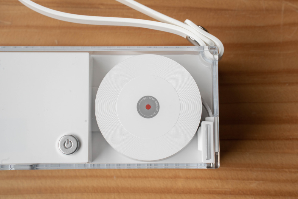 透明パネル越しに見える内部構造や、レコードを思わせる巻取り式ケーブルの仕上げなど、細部の作り込みが本当に美しい。デザインのベースになっているのは、「BraunAudio300」というレコードプレーヤーなのだそう。