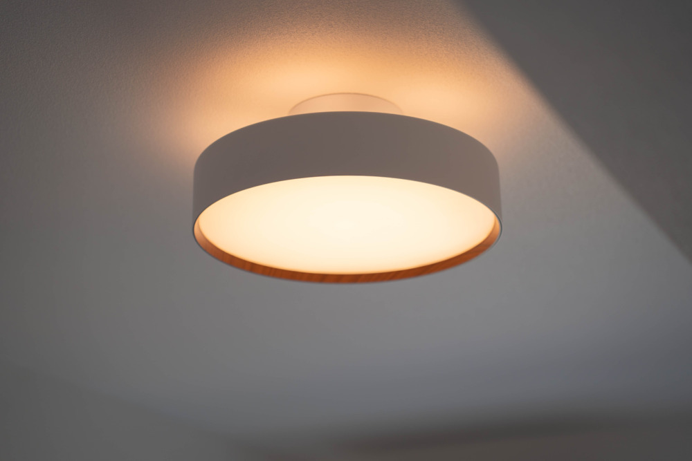 多くのシーリングライトは床に向かって光を放つだけのものですが、このライトは、床向きのダウンライトとは別に上向きの間接照明を搭載しているのが特徴。