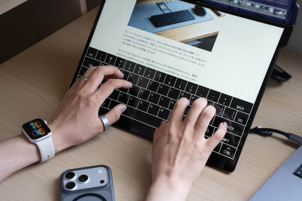 待望のMistel AIRONEのワイヤレスモデル。とにかく薄いのに、しっかりメカニカルの打鍵感、さらにミニマルでカッコいいという、薄型キーボード好きのぼくの中では完璧に近いキーボードです。