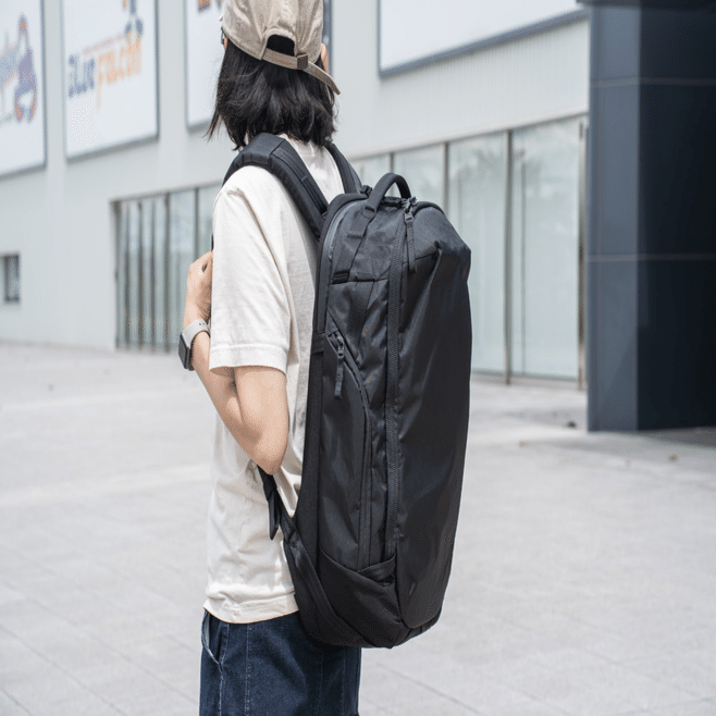 まず同社のバックパック全般にいえることですが、背負ったときのシルエットがとにかく美しいんですよね。「30L」と寛容な収納力であるこちらのMax Backpackも、一見その容量を感じさせないスタイリッシュな造形がたまりません。