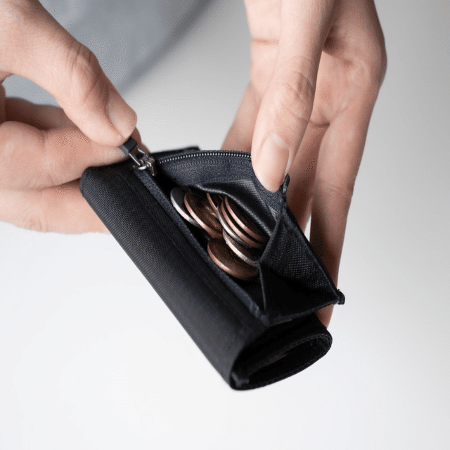 三つ折りのカードサイズの中に、紙幣、小銭、カード(10枚前後)が収納でき、とにかく容量が寛容。そしてこの手のミニマル財布の多くとの違いが、紙幣を折りただまず収納できること。二つ折り財布とほとんど変わらない使用感で、たまの現金決済もすこぶるスムーズに済ませられます。