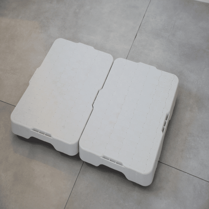 タテにもヨコにも連結でき、載せる物の形状に合わせて使えるのが便利なアイテム。