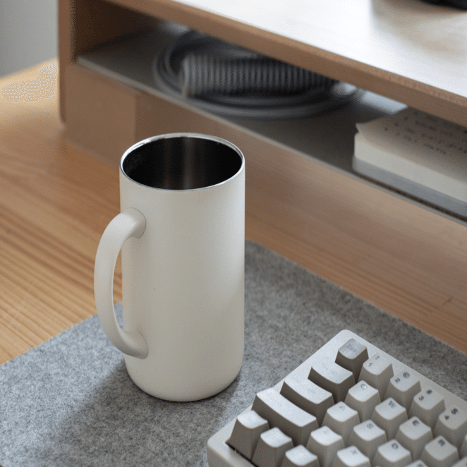 熱々のコーヒーを熱々のまま飲みきりたい!ということで、自宅デスクが仕事場になって以来ずっと作業のお供の真空断熱カップ。