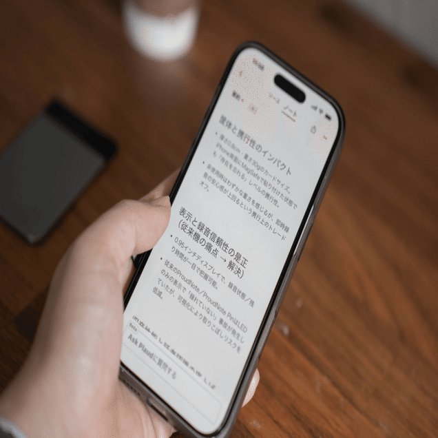 カードタイプで持ち運びがラクで、プロダクトデザインは至高。長時間バッテリーで頻繁に充電する手間もありませんし、高速データ転送対応で、無駄な待ち時間も発生しません。その上かしこい。手にした瞬間から「生産性爆上がり」を実感したアイテムの一つ。