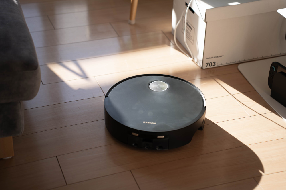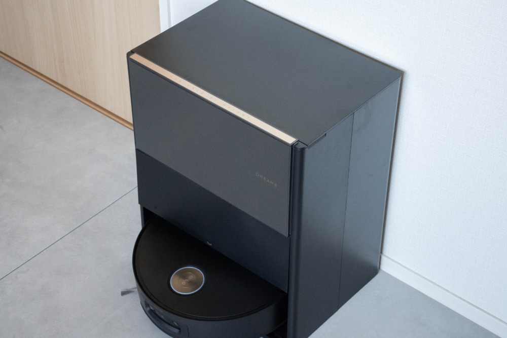 そして本機の真骨頂が、唯一無二のデザイン性です。近未来チックかつ、黒を基調とした凛とした佇まいがインテリアの中で絵になります。Dreame史上、いやもしかしたらロボット掃除機という広い枠組みの中でも、最高峰の美しさではないでしょうか。