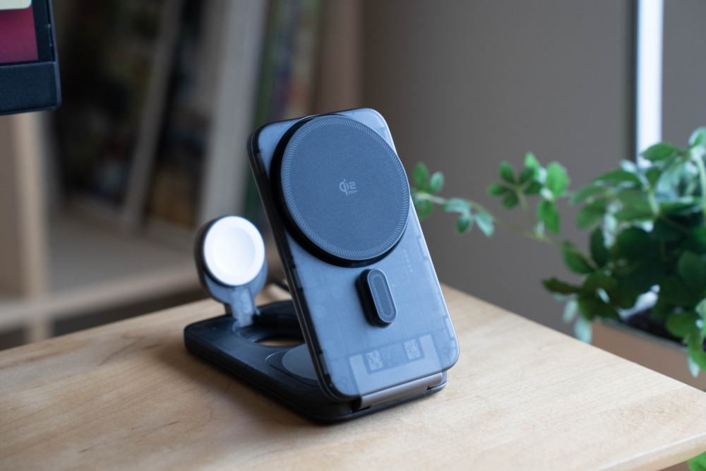 Qi2 25W対応スマホ・イヤホン・Apple Watchを同時に充電できるうえ、いざとなれば折りたたんで持ち運べる薄型設計。実際にしばらく使ってみたので、使用感などレビューしていきます。
