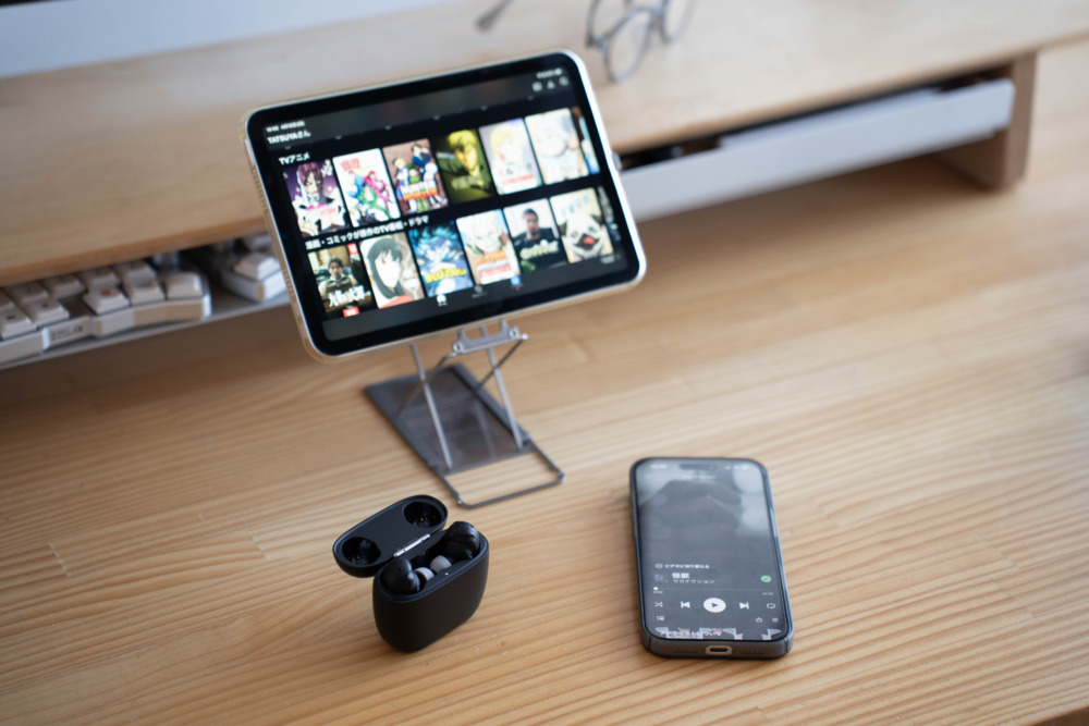 iPhoneとパソコン、iPhoneとタブレットなど、2台のデバイスに同時接続できるマルチポイントにも対応。毎回ペアリングしなおさなくても、シームレスに端末間を行き来できます。「マルチポイント有効時に肝心のLDACがつかえない」というモデルも多いですが、これらを併用できるのは本機の優位性のひとつ。