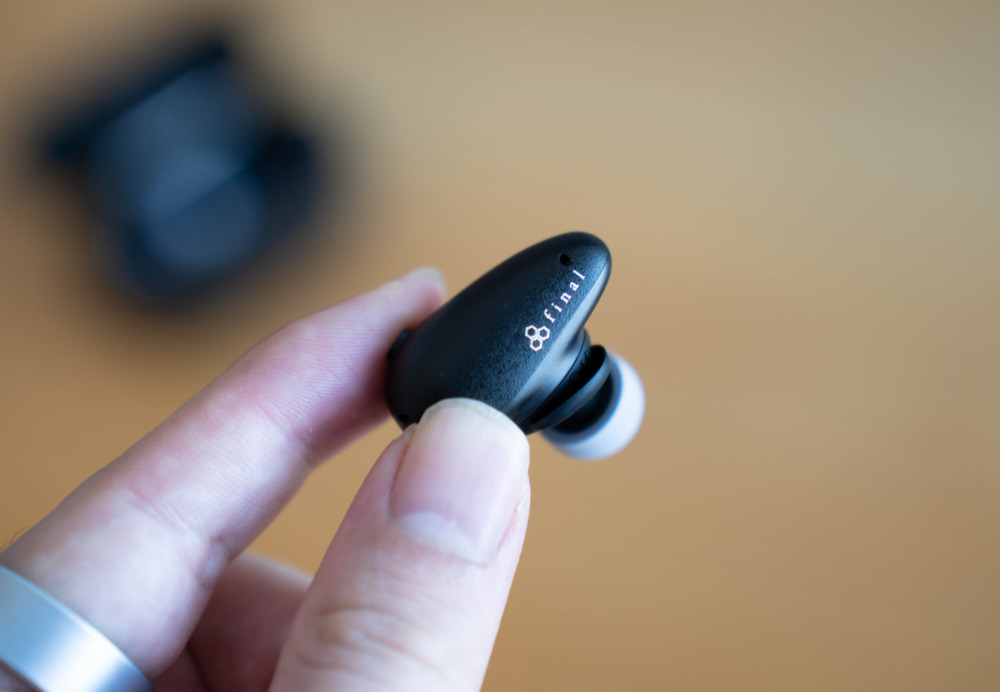 「final」の小さなロゴ印字がまたカッコいい。形はやや大きめのビーンズ形状といった感じで、もちろん好き好きですが個人的にはZE8000の奇抜なトンファー型より断然こちらの方が好み、というか装着しやすいですね。