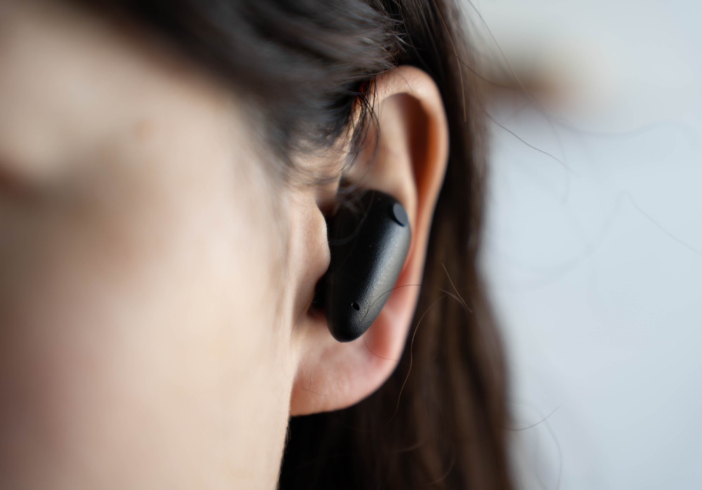 見た目のわりに本体が軽く、その上で付属のイヤーピース「FUSION-G」の質感が高いため、作業時や移動中など2、3時間つけっぱなし、みたいな環境でも不快感なく使えます。耳にねじ込む感じではなくそっと耳の中に置くような感覚で装着できますし、アジャストリングで耳の淵で固定する装着感で安定性も申し分ありません。