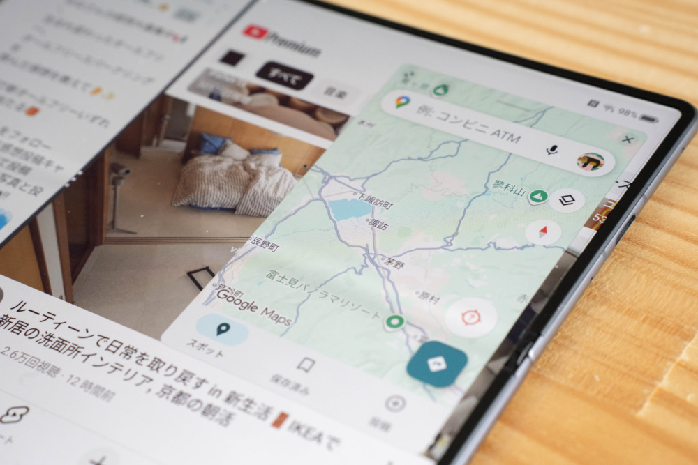 もちろん2つのアプリの同時表示にも対応します。ゲームをしながらSNSを見る、ブラウジングしながらマップを見る、などなど複数の動作を同時におこなうことができます。