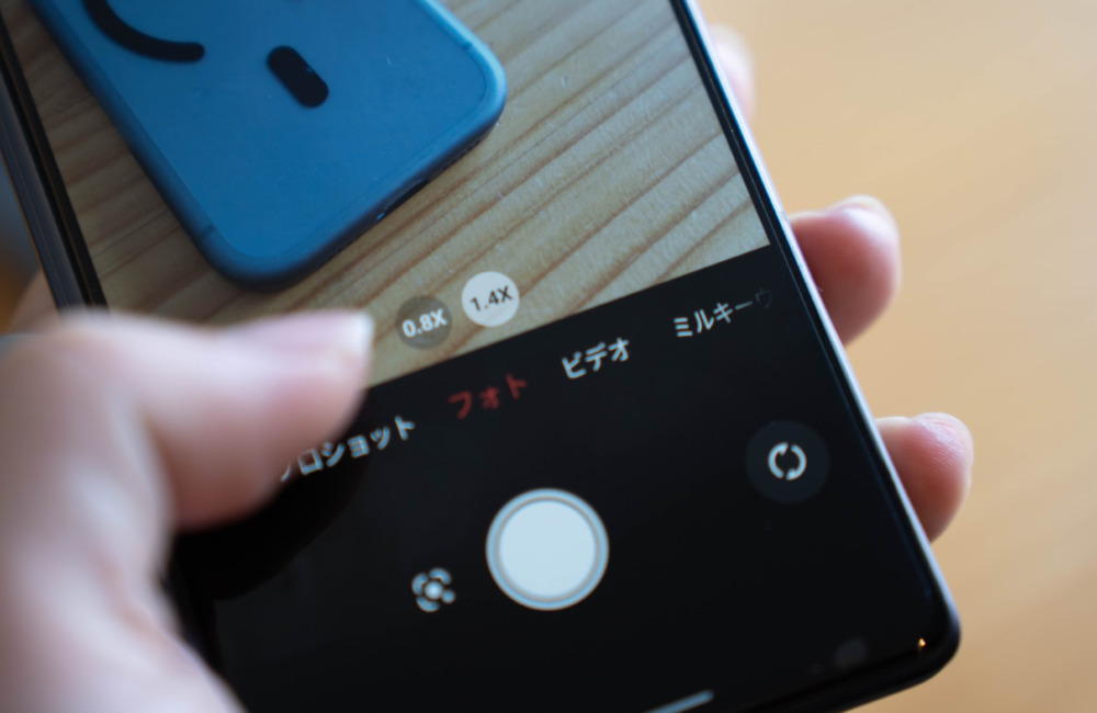 ただし、メインカメラは5000万画素の切り出しができないのか、ワンタッチで2倍に切り替えできない(UI上の「1X」をタップすると「1.4X」に切り替わる)仕様です。遠い場所から影が写らないよう、テーブルの上のモノや料理を撮影する際などやや使いにくいと感じました。5000万画素の広角カメラを搭載しているのであれば、素直に2倍に切り出せると言うことなかったんですけどね。