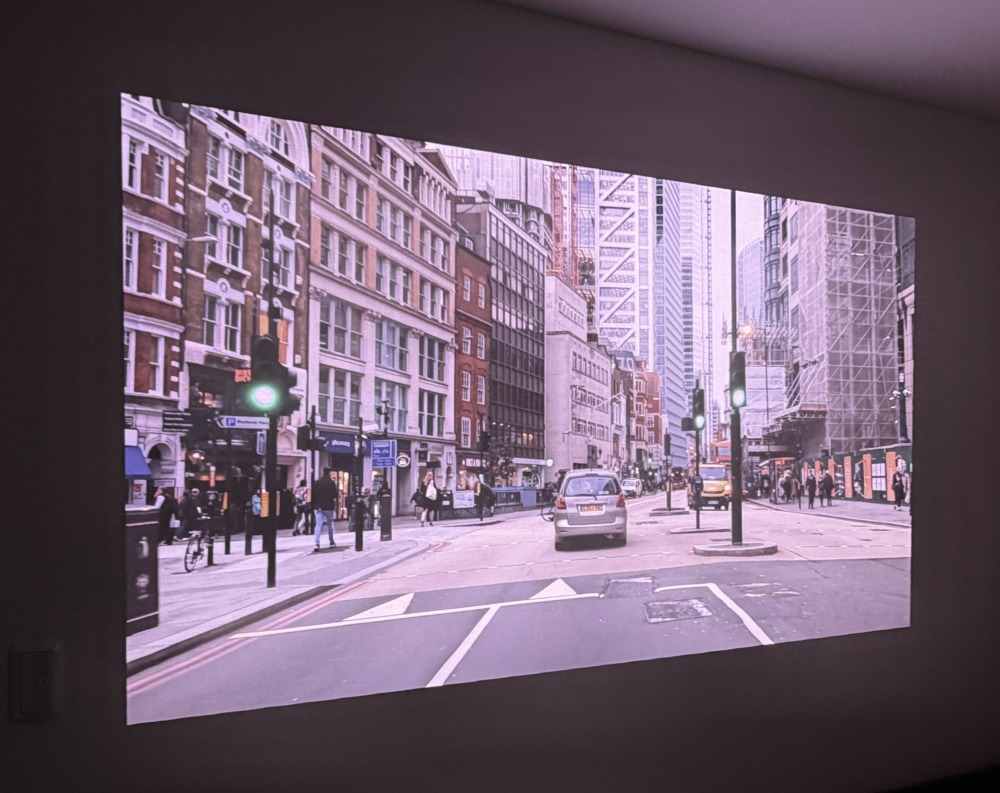 日中の一番陽光が差し込む時間帯でも、カーテンを閉めれば映画や動画視聴なら全然問題ないですし、それこそ夕方以降に投影するともはや液晶テレビ以上では?と言いたくなるくらい鮮明で明るいです。